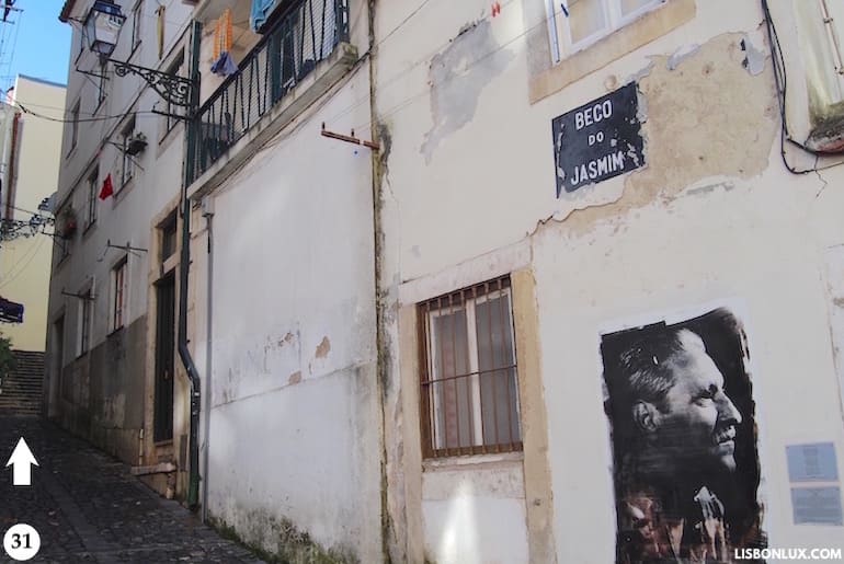Turn to Beco do Jasmim (31), where you reach another picturesque corner (32). Turning right, you arrive at Rua João do Outeiro (33), where you find one of the city’s most traditional restaurants, the popular Zé da Mouraria, which only opens for lunch. A few feet away is Casa Fernando Maurício, a small museum inaugurated in 2015, dedicated to fado singer Fernando Maurício, known as the "King of Mouraria" and the second most popular personality in the neighborhood after Maria Severa. With only three rooms, the museum celebrates the life of the singer through his personal objects, awards, photographs and recordings.